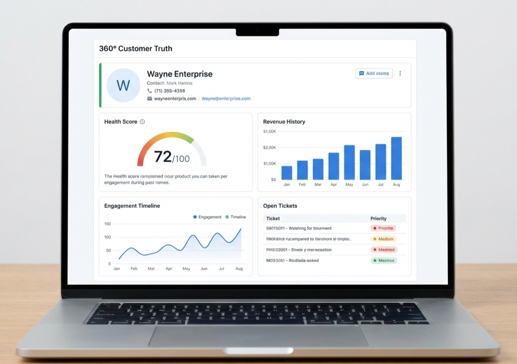Bring together all customer data across engagement, usage, revenue, support, renewals, and sentiment into a single, unified view. No more scattered tools, assumptions, or blind spots. Every team — from CSMs to leadership — works from the same source of truth.
